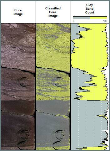 This easy to use and intuitive process can for example be used to derive sand-shale fractions from a CT or optical scans within seconds.