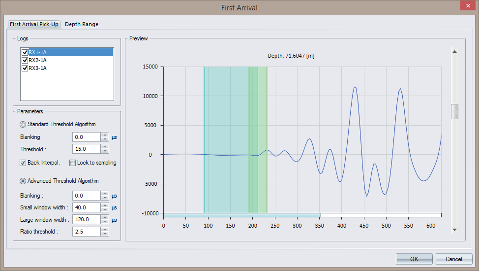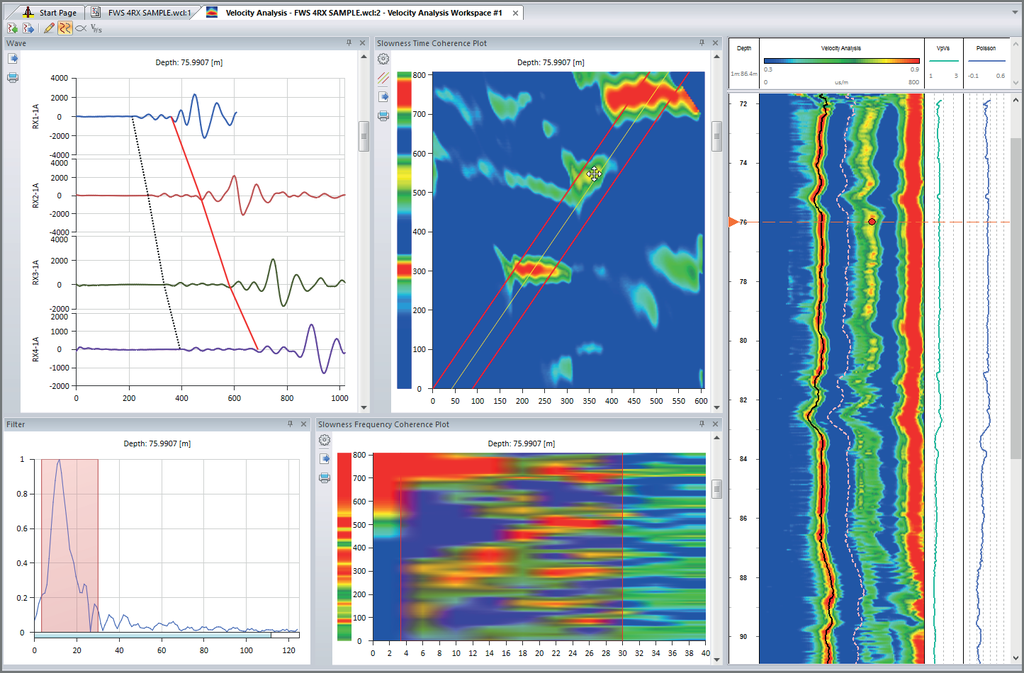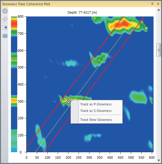 - Slowness-Time-Coherence diagram with mud-line and interactive tools to control performance and slowness picking.