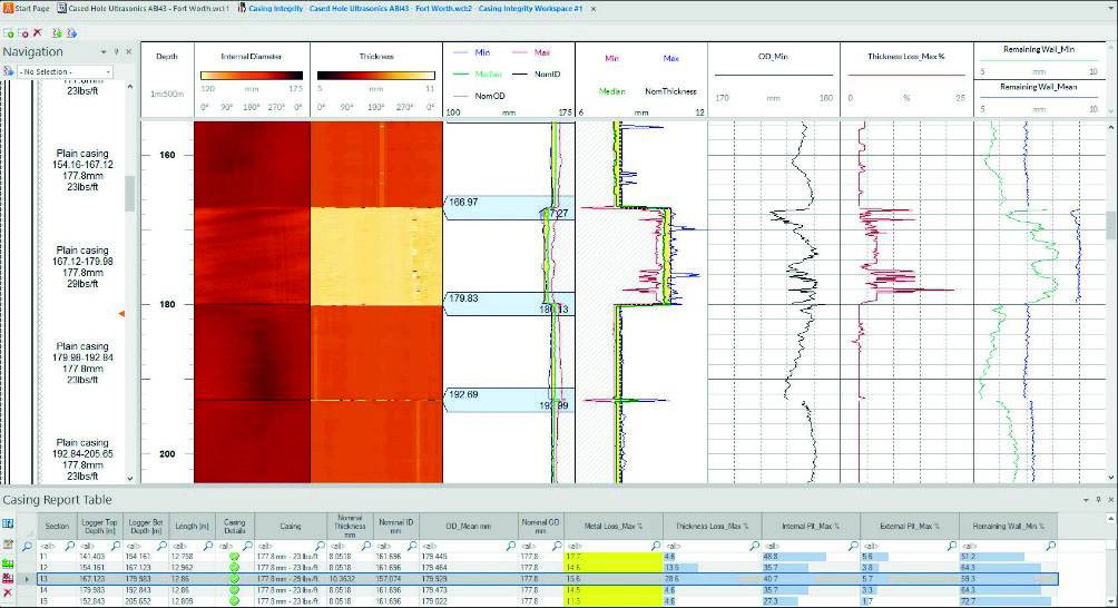 The Casing Integrity module has been extended to handle thickness data along with the internal caliper. Accordingly, a full set of statistics dealing with caliper-only, thickness-only and caliper + thickness can now be calculated in the Casing Integrity workspace (Figure 8).